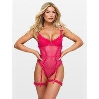Ann Summers Locked On Love Body Made from delicate spot mesh with flirty frill trims, our Locked On Love Crotchless Body creates a stunning, confident silhouette. This sexy black lingerie piece features padded and underwired balconette cups that beautifully accentuate your cleavage, combining style with sensual appeal. The barely-there thong back and open design of this alluring bodysuit add a playful touch while ensuring comfortable wear. Made from spot mesh and frill trims Material Content: Poly amide...