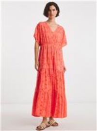 This new broderie smock dress has been designed in a beautiful coral, giving a hint of European summer to your outfit. The dress features an all over broderie artwork design, v shaped neckline, short sleeves and a relaxed fit.