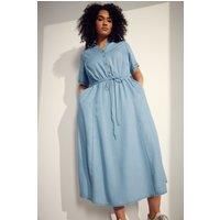 This contemporary dress is a new season staple. Crafted from a soft lyocell fabric, this dress is highly breathable and provides the perfect amount of stretch. It features a classic collar, button fastenings, short sleeves, two side pockets and a figure-flattering elasticated waist. Pair with trainers for an effortless everyday look you'll love. | Evans Women's Lyocell Denim Shirt Dress in Light Blue | Size: 18