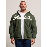 BadRhino Borg Lined Zip Through Hoodie Size & Fit True to size - order your usual size Regular fit Available in sizes L - 7-8XL (L:40", XL:42", 1XL:44"-46", 2XL:48"-50", 3XL:52"-54", 4XL:56"-58", 5-6XL:60"-66", 7-8XL:68"-74") Details Borg Lined Zip Through Hoodie by BadRhino Dark Green Zip up fastening Long sleeves BahRhino slogan Front pockets Borg lined Material & Care Material Content: 52% Polyester 48% Cotton Lining 100% Polyester Washing Instructions: Machine Washable - Manufacturers part number: 874474