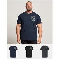 BadRhino 3 Pack Worldwide Graphic T-Shirt Size & Fit True to size - order your usual size Regular fit Available in sizes L - 7-8XL (L:40", XL:42", 1XL:44"-46", 2XL:48"-50", 3XL:52"-54", 4XL:56"-58", 5-6XL:60"-66", 7-8XL:68"-74") Details 3 Pack Worldwide Graphic T-Shirt by BadRhino Navy Graphic print on front and back Crew neck Short sleeves Material & Care Material Content: 100% Cotton Washing Instructions: Machine Washable - Manufacturers part numbers: 876671|WQY1W