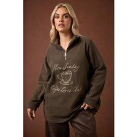 Upgrade your casual wardrobe with this new-in fleece from Yours Curve. Crafted from soft fleece fabric, it showcases a "Coffee Lover Club" slogan with a coffee-themed graphic. Designed with a high neckline, quarter zip fastening, and long sleeves. Style it with leggings and trainers for a laid-back look youll reach for again and again. | Yours Women's 'Coffee Lover Club' Quarter Zip Fleece in Chocolate | Size: 26-28 - Manufacturers part number: Yours_5063589476456