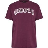 Add trending styles to your wardrobe with this slogan t-shirt from Long Tall Sally. Made from a soft cotton fabric, it features short sleeves and completes with a crew neckline. Wear with jeans and trainers for an everyday outfit idea | Long Tall Sally Women's Tall 'Amour' Slogan T-Shirt in Burgundy | Size: 16 - Manufacturers part numbers: Long Tall Sally_5063589491695|885078