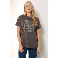 Switch out a basic tee for this coffee house graphic t-shirt from Long Tall Sally. Made from a comfortable cotton fabric, it features short sleeves, crew neckline and completes in an acid wash design. Pair with any leggings and trainers for an easy everyday look | Long Tall Sally Tall Coffee Graphic Cotton T-Shirt In Brown - Manufacturers part number: Long Tall Sally_5063589493071