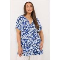 Welcome this trending colour to your wardrobe this season Crafted from a soft jersey fabric, this blouse will allow you to move with freedom. It features a leaf print, notch neckline, button fastenings and short grown-on style sleeves. Pair with the wide leg trousers for an everyday ensemble you'll love. | Evans Women's Leaf Print Blouse in Blue | Size: 18 - Manufacturers part number: 893921