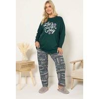 Stay cosy and stylish this season with this new-in pyjama set from Yours Curve Made from a soft cotton fabric, it features a 'lets get cosy' slogan, a fairisle print, long cuffed sleeves, a wide leg style, and an elasticated waistband for the perfect fit. Style with your favourite slippers for your next night in | Yours Women's Fairisle Wide Leg Pyjama Set in Green | Size: 34-36 - Manufacturers part number: Yours_5063589714206
