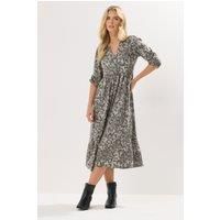 In need of a day & night dress option Look to this animal print style from PixieGirl. Made from a soft jersey fabric, it features 3/4 length sleeves, an open collar and completes with a tiered style skirt that falls at a maxi length. Pair with boots and layer over a biker jacket to complete the look | PixieGirl Women's Petite Animal Print Midaxi Dress in Grey | Size: 10 - Manufacturers part number: PixieGirl_5063589754639