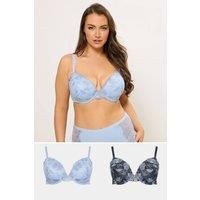 This versatile bra from Yours Curve is made from a stretch fabric that is great for everyday comfort. Featuring underwired, padded full cups and adjustable straps for extra support. Complete with a embroidered floral design. | Yours Women's 2 Pack Embroidered Floral Padded Bras | Size: 48D - Manufacturers part number: Yours_5063589860897