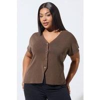 This must-have knitted top from Yours Curve is the perfect option for the new season. Made from a soft jersey fabric, it features gold tone buttons, a v-neckline and short sleeves. Style with jeans and boots for a transitional look you'll love. | Yours Women's Short Sleeve Knitted Top in Chocolate | Size: 26-28 - Manufacturers part number: Yours_5063589883711
