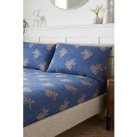 For a touch of nature, fit your bed with the illustrative design of trees in the soft, complimentary tones of wine, blue or green. Comfortable and easy to care for, especially when matched with our coordinating duvet set. | Cotton Traders Woodview Fitted Sheet Set in Mid Blue | Size: King
