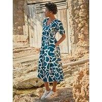 FatFace Remi Shibori Midi Dress Size & Fit True to size - order your usual size Regular fit Midi length Side neck to hem 49" x 124cm Available in sizes 6 - 24 Details Remi Shibori Midi Dress by FatFace Blue Light, effortless midi dress made for sunny days Flattering V-neckline Subtle balloon sleeves with a soft cinch All-over abstract floral print Material & Care Material Content: 100% Cotton Washing Instructions: Machine Washable