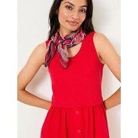 FatFace Sal Midi Dress - Red Size & Fit True to size - order your usual size Regular fit Midi length Available in sizes 6 - 24 Details Sal Midi Dress - Red by FatFace Navy Scoop neck Sleeveless Wide straps Waffle style vest body Buttoned skirt Material & Care Material Content: 100% Cotton Washing Instructions: Machine Washable