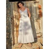 FatFace Thea Dress Size & Fit True to size - order your usual size Regular side neck to hem 49" x 125cm Available in sizes 6 - 24 Details Thea Dress by FatFace White Flattering v-neckline Tie waist Button details Tiered skirt Lightweight fabric Machine washable Material & Care Light, effortless, and made for sunny days. The Thea beachwear dress features a flattering v-neckline, tie waist, and subtle button details for an elevated touch. Designed to slip over swimwear or dress up with ease, its breezy s...