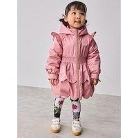 Ted Baker Younger Girls Frill Coat Size & Fit True to size - order your usual size Regular fit Mid length Details Younger Girls Frill Coat by Ted Baker Pink Hooded neck Long sleeves Fixed hood Zip up fastening Side seam pockets With its soft pink hue and tiered frill detailing, this coat is designed to delight. The silhouette flares gently at the hem, giving it a sweet, dress-like shape that little ones love to twirl in. It’s cosy, too - padded for warmth and lined with soft cotton to keep her snu...