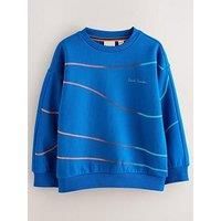 Paul Smith Junior Boys Graphic Sweater - Blue Add a splash of artistic flair to his wardrobe with this vibrant and stylish sweatshirt from Paul Smith Junior. Presented in a rich royal blue, this standout piece is defined by a dynamic, multi-coloured wave graphic that flows across the body and sleeves, creating a modern and eye-catching effect. Material Content: 100% Cotton Washing Instructions: Machine Washable Long Sleeve Crew neck Soft and breathable
