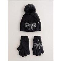 Ted Baker Older Girls Diamante Pom Hat Set Size & Fit Available in sizes 3-4 Years - 11-13 Years Details Older Girls Diamante Pom Hat Set by Ted Baker Black Ribbed knit beanie with turn up detail, faux fur pom pom, silver tone heart button and diamante bow design Knitted gloves with ribbed cuffs, silver tone heart button and diamante bow design Material & Care Material Content: Hat:Main: 46% Viscose,32% Recycled polyester,22% Nylon,Lining: 93% Polyester,7% Elastane/ Gloves:Main: 46% Viscose,32% Recycled...
