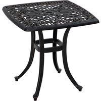 Enhance your outdoor with this Outsunny bistro table. Comes with a floral cut-out tabletop with curved legs for a beautiful design. Made from cast aluminium frame, with a powder coated finish, this is a strong outdoor coffee table suitable for year-round year. Comes with a £3.55 cm central hole to hold parasol in place.Features:A £3.55 cm hole fits a £3.5 cm umbrella polePowder coated cast aluminium structure is strongAdjustable foot pads suited to uneven floorsSquare tabletop is spaciousElegant flora c... - Manufacturers part number: 84G310V00BN