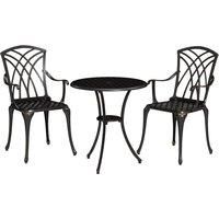This three-piece outdoor garden furniture set from Outsunny will give you the optimal spot to dine and relax. It's formed of two chairs and a matching table, with cast aluminium forming the frame of all pieces to ensure they are robust and tough. Round in shape, the table features a middle hole to keep a sun parasol securely in place, with the back of the chairs showcasing a cut-out design for an attractive finish. Our outdoor table and chairs are great for flats and apartments with balconies.Features:... - Manufacturers part number: 84B345V00TN