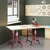 Simplify your home and work DIY tasks with this HOMCOM saw horse set. Featuring a steel frame, each work horse is strong and reliable, collectively supporting up to 200kg. The height is adjustable between 80cm and 130cm for optimal and safe use. Its foldable design allows for easy storage and portability.Features:. Set of two for a complete DIY kit. Tough and reliable steel structure. Height adjustable for a safe and comfortable working level. Foldable design for easy portability and storage. Maximum load of 100kg per piece, assembly requiredSpecification:. Colour: Red. Material: Steel. Overall Dimensions: 80-130H x 68L x 58W cm. Folded Dimensions: 84H x 68L x 11W cm. Weight capacity: 100 kg (each) - Manufacturers part numbers: HOMCOM_5063603011823|UKB40-015V00RD0331