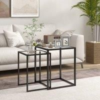 HOMCOM Nesting Tables Set of 2, End Table with Tempered Glass Top, Black, Black
