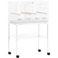 Discover the joy of a spacious PawHut budgie cage that effortlessly separates into two cosy rooms or transforms into a grand space. A secure latch on 1.2cm bar spacing, your budgies, lovebirds, or canaries will stay safe and content. Suitable for both play and relaxation, this canary cage includes 4 perches, 4 food dishes and a stand with wheels and a shelf, making it a sanctuary for your feathered friends.Features:Spacious design can be divided or used as one large room1.2cm bar spacing with secure lat... - Manufacturers part number: D10106V01WT