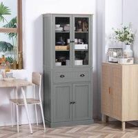 This HOMCOM Farmhouse kitchen storage unit transforms your kitchen from cluttered, to organised - in no time. It's formed of and upper and lower cupboard and middle drawer - so there's plenty of room for all the essentials. The glass accents on the upper cupboard add a sleek touch, whilst allowing you to see inside easily. Not just for the kitchen - you can use this pantry in the living room, hallway - or even the office. | HOMCOM Tall Kitchen Cupboard, 5-tier Storage Cabinet with Adjustable Shelves in Grey - Manufacturers part numbers: HOMCOM_5063603067288|UK835-602GY0331