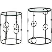 A striking frame design, paired with the sleek black colour, makes these two side tables a glamorous addition to your home. The frames, made from metal, are crafted into a cool hoop and ball design, covered in water-resistant paint for extra protection. The table tops are made from safe tempered glass to offer a solid and sleek resting place. Set comes with a big table and q smaller, allowing you to neatly tuck the latter into the larger table for excellent space-saving.Features:Two-piece set, great usi... - Manufacturers part number: 833674V00BK
