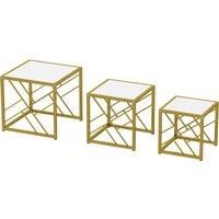 Three times simple, everyday beauty for your living space with this stacking coffee table set from HOMCOM. Consisting of a large, a medium and a smaller sized table, each table is made using a black metal frame for a stable and durable core. The frames, made from metal for strength, come with a criss-cross design on the side for a point of difference. And when done, you can stack them neatly together.Features:Set of three - can be used separately or together - use them however you wantMetal fram... - Manufacturers part number: 839062V00WT