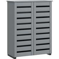 Organise and store footwear in classic, beautiful style, with this HOMCOM shoe storage unit. It has five tiers, with four adjustable shelves, providing space for 15 shoe pairs - great for individual and shared use. This slim shoe cabinet comes complete with two slatted doors to bring inside ventilation.Features:Five-tier design holds up to 15 shoe pairsDark wood-effect is classic, beautiful and versatileSlatted doors for ventilation. Helps keep inside fresh and aeratedFlat tabletop provides extra displa... - Manufacturers part number: 837260V80CG
