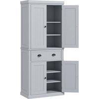 This HOMCOM pantry cupboard is an ideal solution for any kitchen. Made from MDF and with particleboard reinforced backboards, it is ideal for storing all your kitchen items from accessories, utensils, dry goods and even your cookbooks. The free-standing kitchen unit has 4 doors and 3 adjustable shelves for you to position as required. The door handles and knobs have a brushed nickel finish, giving the unit elegance and style. This is a great unit to have to match any room decor.Features:Tall storage cab... - Manufacturers part number: 835042V05GY