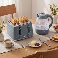 Start your mornings right with HOMCOM's 4-slice toaster and 1.7L fast-boil kettle duo! Prepare toast and hot drinks together, making breakfast effortless for the family. The kettle boils water in 170 seconds, with a clear gauge, blue light, and Strix thermostat, plus safety features like auto shut-off, boil-dry, and overheat protection. Meanwhile, the toaster's seven browning levels cater to every taste, ensuring golden, crispy perfection for busy mornings. Stylish, safe, and easy to use! | HOMCOM Kettle & Toaster Set with Strix Thermostat, Crumb Tray, Grey - Manufacturers part number: HOMCOM_5063603090347