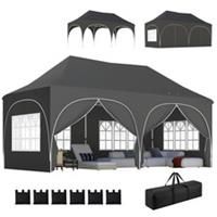3 x 6 m peak-top canopy: A spacious 3 x 6 m shelter great for weddings, parties and gatherings, featuring a peak-inspired roof with curved valance and church windows for a refined look.