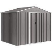 Outsunny 8 x 6ft Galvanised Steel Shed, with Double Door - Light Grey
