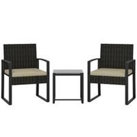 Garden bistro set for 2: Featuring two armchairs and a matching table, this garden set is perfectly sized for intimate conversations, peaceful reading, or sunset drinks with company. Create a chic corner at your balcony, patio, or porch Cushioned comfort: 25 D high-density sponge cushions make you feel thick, high-rebound and supported. Relax on the rattan garden chairs during weekends or unwind after a long day of work.