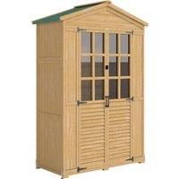 Outsunny Outdoor Wooden Storage Cabinet, Garden Tool Shed with Acrylic Windows for Patio, Light Brown