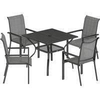 Save 22% on the Outsunny 5 Pieces Outdoor Dining Set for 4, Garden Table and Stackable Chairs with Breathable Mesh Seat and Parasol Hole, Grey from Aosom. We found this offer 3 days ago, so hurry whilst stocks last! - Manufacturers part number: 84K010V00CG