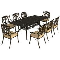 You centre spot for weekend brunches, evening dinners and more outside with this Outsunny outdoor dining table and chairs set. The patio table and chairs with floral and grid cut-out patterns add beautiful visuals, with seat cushions included for comfort.