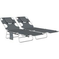 Outsunny 5-Position Adjustable Sun Loungers Set of 2 with Reading Hole and Side Pocket, Dark Grey
