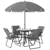 Simple, stylish outdoor garden furniture for relaxing or dining with this Outsunny outdoor table and chairs set. This outdoor dining table and chairs are complete with a £180 cm parasol to shade and protect you.
