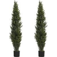 HOMCOM Set of 2 Decorative Artificial Plants Cypress in Weighted Pot, Fake Plant with 2035 Leaves, 150 cm