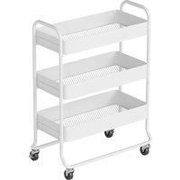 Easy storage, made easy to move - this HOMCOM kitchen trolley on wheels. The storage trolley comes in a three-tier design: a small, medium and large basket, offering you plenty of room for keeping an array of items organised and stored in the bedroom, bathroom, office and even kitchen. Built from metal for a tough everyday piece, complete with four wheels and two top handles to move around easily.Features:Features three baskets with varied heights, easily storing various itemsFour 360 wheels and upper h... - Manufacturers part number: 801427V00WT