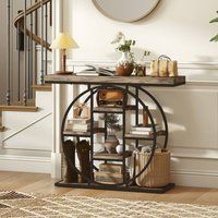 Tired of a cluttered, uninspiring entryway£ A messy first impression can make your whole home feel chaotic. This HOMCOM entryway table with storage transforms your space. Its bold industrial design and vintage-style shelves make a statement, while the thick tabletop easily supports heavy decor. Six open shelves on this console table neatly organise your essentials, creating a welcoming and stylish first impression that you and your guests will appreciate every day. | HOMCOM Industrial Console Table, Hallway Table with Storage Shelves in Brown | Size: 100CM - Manufacturers part numbers: HOMCOM_5063603307131|UK837-695V80RB0331