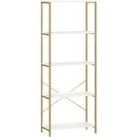 Striking storage, for an organised home, with this HOMCOM bookshelf. With five shelves there's plenty of room for holding books, decorations photos and more - easy to organise too. The metal frame means a strong core, fitted with a back 'X' bar for extra support. In a gold tone and wood-effect design, this is a modern-style design which brings added character into your home.Features:Five shelves mean plenty of storage and holding roomA strong metal frame, with back 'X' bar for extra supportWhite wo... - Manufacturers part number: 836643V00WT