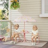 Transform your garden into a whimsical playground with AIYAPLAY kid's folding table and chairs set, featuring a cute rainbow design. This four-piece set includes two kids folding chairs and a table with a central hole for the adjustable parasol, offering shade on sunny days. Suitable for children aged 2-5, the entire set easily folds away for convenient storage.. Four-piece set, includes chairs, table and parasol. Cute rainbow design engages kid's imaginations. Removable and adjustable parasol adjusts in height for optimal shade. Chairs and table fold for easy storage and transport. Suitable for children aged 2-5, enhancing usability. Support feet on chairs to prevent tipping for safety. Assembly Required.. Colour: Pink. Material: Steel pipe, Polyester. Table dimensions: 50H x diameter 49.5cm. Chair dimensions: 50H x 36.5W x 38.5Dcm(Fully expanded), 6.2H x 48.5L x 36.5Wcm(Folded). Six-bone parasol: 86-122H x diameter 100cm. Seat: 26H x 29W x 23Dcm. Armrest: 38H x 20Lx 3.5Wcm. Backrest:...