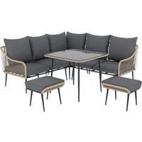 Simple and sleek, finished with total comfort - this Outsunny corner garden furniture set ticks all the right boxes. The garden set comes with six pieces: two loveseats, a corner chair, two footstools and a square table. Steel frames mean strength and suitability for outdoor use. The garden lounge set features thickened padded cushions on the seats and back so you can sit and relax comfortably. Complete with a glass tabletop for a sleek look. Plastic rattan ropes bring a sophisticated touch.Features:Six... - Manufacturers part number: 84G547V70LR