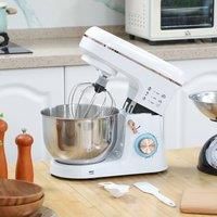 Unleash your inner baker with the HOMCOM Stand Mixer for baking, featuring a robust 1400W motor and a handy six-speed setting plus pulse for great meringues. Its tilt-head design simplifies bowl access, while the anti-slip base keeps things steady. Complete with a 5L food-grade stainless steel bowl, this food mixer with bowl is the companion for any cake mixer enthusiast. | HOMCOM Stand Mixer with 6 Speeds, Pulse, 5L Stainless Steel Bowl, Food Mixer in White