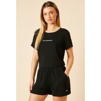 Emporio Armani signature eagle logo embroidered on the left leg Soft, stretchy fabric with elastane for enhanced comfort and movement Practical side pockets for essentials Elasticated waistband for a secure, comfortable fit Relaxed silhouette with a flattering mid-thigh length These Emporio Armani Lounge Shorts offer the perfect blend of casual comfort and designer style. The relaxed fit and stretchy fabric make them ideal for lounging at home, whilst the iconic eagle emblem adds a touch of luxury to your downtime wardrobe. Style with the matching top as seen on the model for a coordinated look, or pair with a simple vest top for warm summer days. These versatile shorts transition effortlessly from morning coffee on the patio to casual meet-ups with friends. For a contemporary weekend outfit, team with white trainers and an oversized shirt. The understated design makes these shorts a wardrobe essential that will complement your existing casual collection whilst adding that distinctive ... - Manufacturers part number: Debenhams_5063631068479