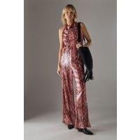 Striking snake sequin pattern that catches and reflects light with every movement Elegant cowl neckline that drapes beautifully across the dcolletage Flattering drop waist silhouette creating a lengthening effect Sleeveless design with an alluring open back detail Wide-leg trouser design for comfortable yet sophisticated wear Make a dramatic entrance at your next formal occasion in this show-stopping Warehouse jumpsuit. The luxurious drape of the cowl neckline creates a sophisticated... - Manufacturers part number: Warehouse_5063631089948