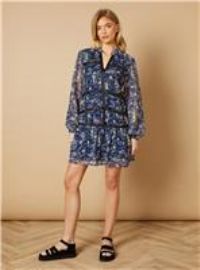 Chiffon fabric with delicate floral print Hand-embellished trim for a unique touch V-neckline and mini length Voluminous long sleeves with gathered cuffs Tiered skirt with lace-like detailing Embrace the essence of feminine charm with this enchanting mini dress from Oasis. The airy chiffon fabric adorned with a captivating floral print creates a whimsical and romantic look perfect for various daytime occasions. The hand-embellished trim adds a bespoke feel, making each piece truly sp...