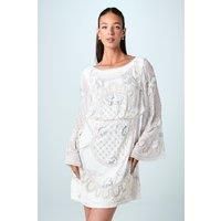 Exquisite hand-stitched beadwork and sequin detailing in an intricate placement artwork design Elegant round neckline with delicate back tie detail for a feminine touch Sophisticated mini length with a relaxed silhouette that flatters the figure Statement bell sleeves adding dramatic flair to this bridal ensemble Fully lined for comfort and structure, ensuring a perfect fit for your special day This stunning Coast mini dress showcases meticulous craftsmanship with its intricate hand-... - Manufacturers part number: Coast_5063631464936